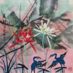 潘天寿指画《晴霞》, 四屏通景且首次面世!