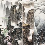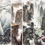 潘天寿指画《晴霞》, 四屏通景且首次面世!