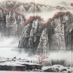 秋山红叶,林壑丰茂。此幅作品在奇峰峭壁间展现了太行山苍茫厚重的阳刚之气,高雅纯粹间有着诗一样的韵致与意境,让人心旌荡漾,醉迷其间,不禁感叹中华民族的秀美山川。“崎岖石磴绝游踪,薄雾冥冥藏半峰”,画面笔墨简练,空间层次清晰,透露出一股清新飘逸、朴秀多姿的气息,表现出虚实相映,气韵生动的艺术效果。