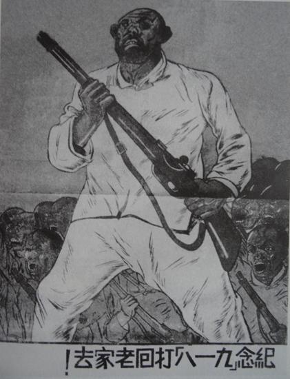 △李可染创作的宣传画《纪念“九一八”,打回老家去!》