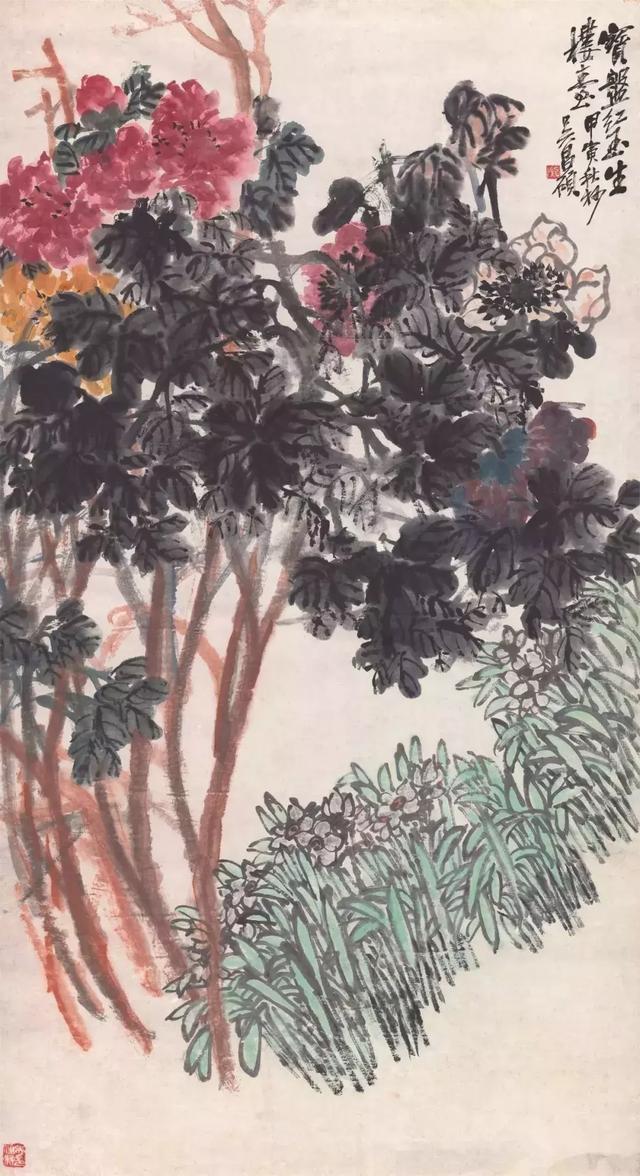 潘天寿指画《晴霞》, 四屏通景且首次面世!