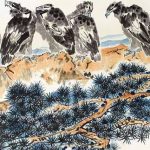 潘天寿指画《晴霞》, 四屏通景且首次面世!