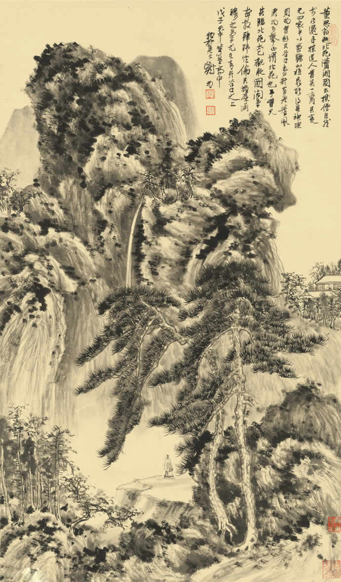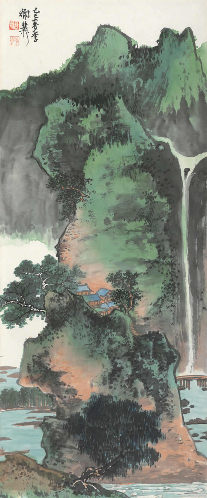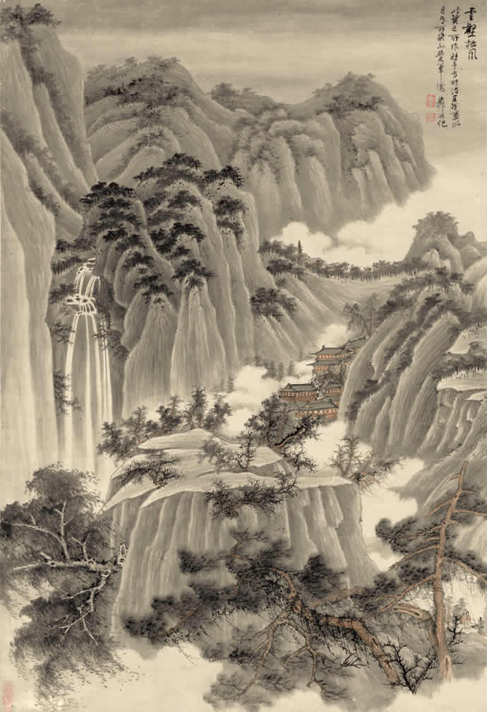 谢稚柳丈二巨制《松瀑亭子》,扛鼎之作!