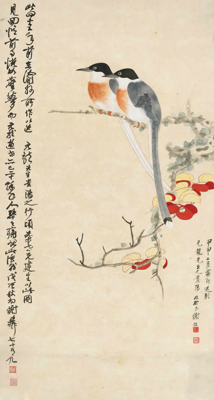 谢稚柳落墨花鸟画佳作《枝头鸟趣》