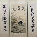 潘天寿指画《晴霞》, 四屏通景且首次面世!