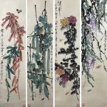 潘天寿指画《晴霞》, 四屏通景且首次面世!