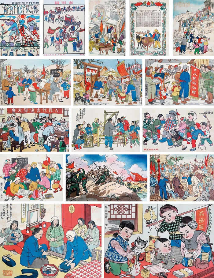 儿童劳军 喜气临门 清算图 开展民兵爆炸运动 强渡黄河 人民代表选举大会 学文化 做军鞋 参军图 纺织互助 土地改革 军属最光荣 新年劳军 春耕图 娃娃戏 豆选 套色木刻