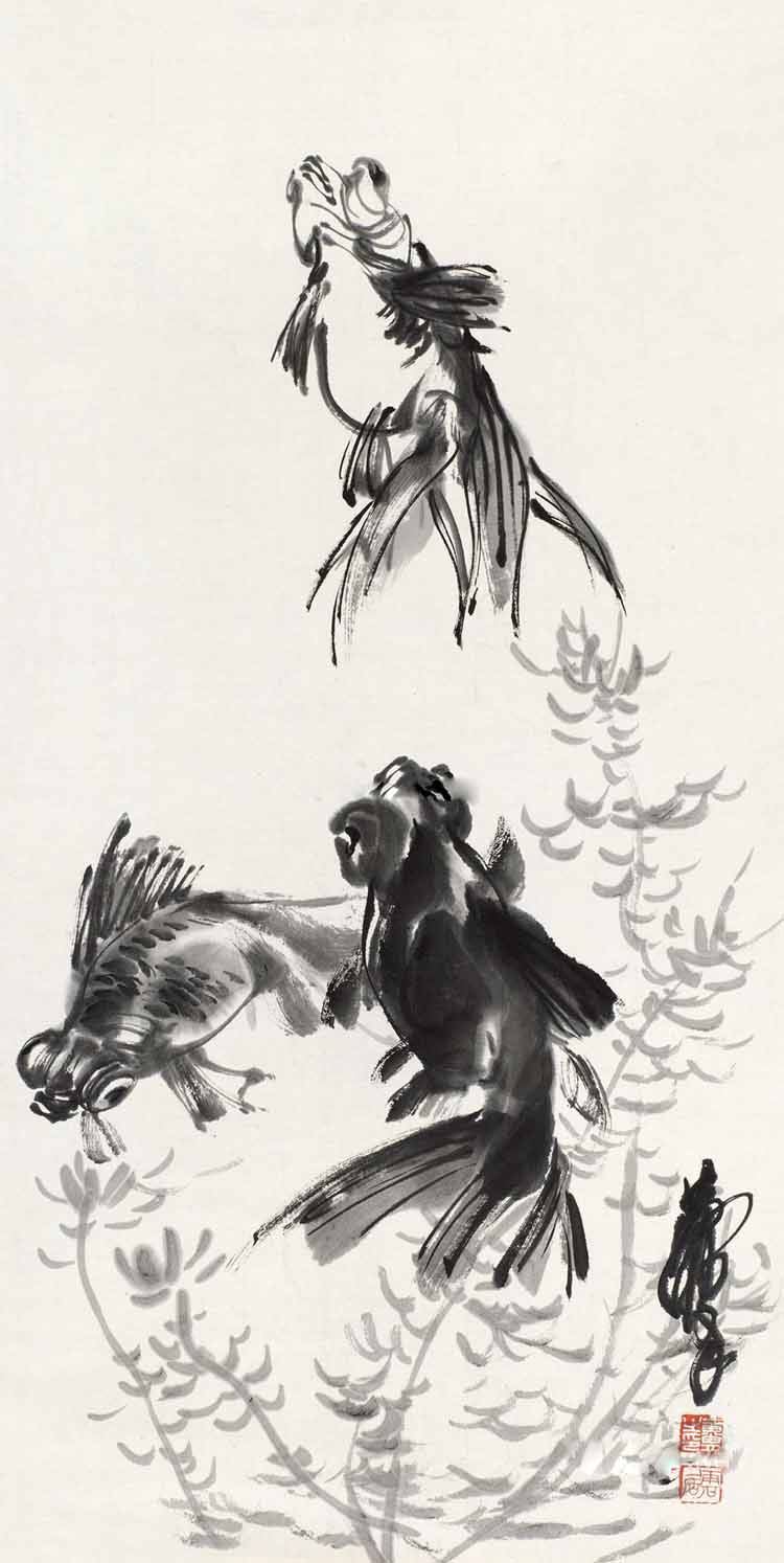 △黄胄 1982年作 鱼跃 67.8×44.7cm