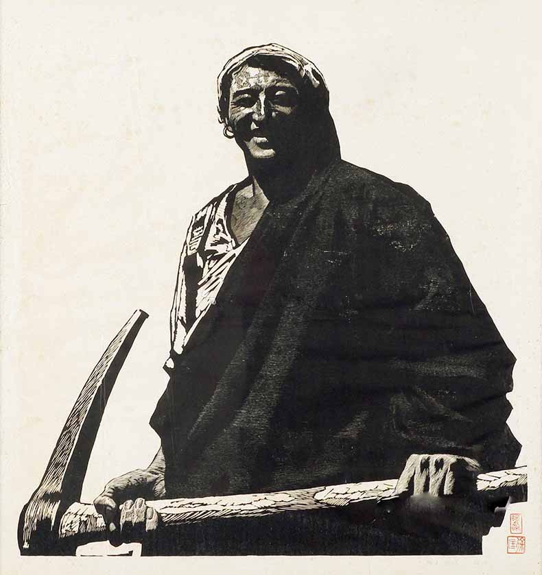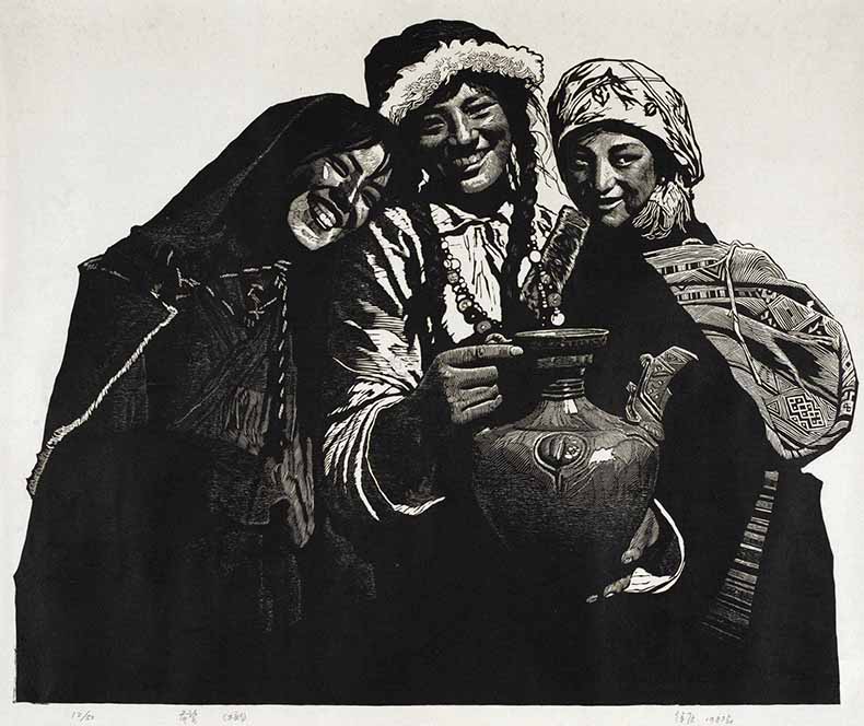 △徐匡版画《戴红帽子的藏族女孩》39×32cm