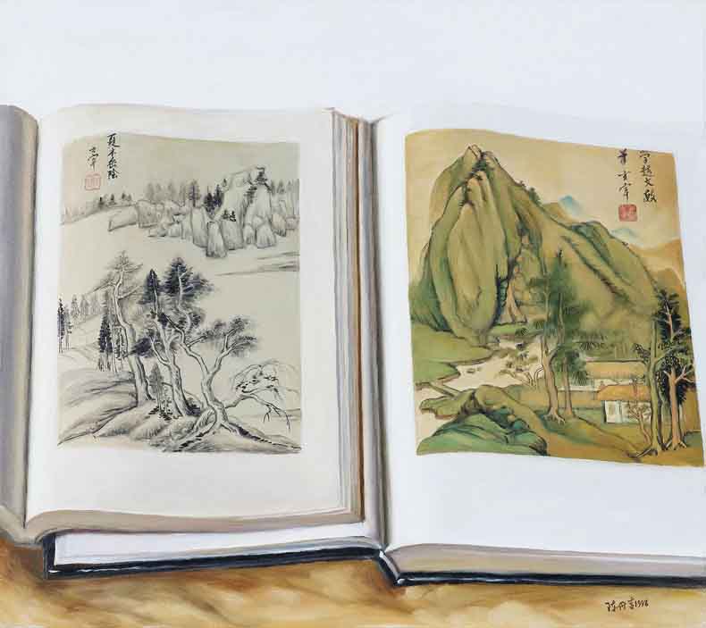陈丹青早在1997年之前便开始了对印刷画册的写生,两三本摊开的画册,并置不同历史时期的画作。画册中的作品,从文人画到春宫画,从马奈到董其昌,从书法到油画,陈丹青都曾涉猎过, 整个世界美术史便是他视觉实验的材料。