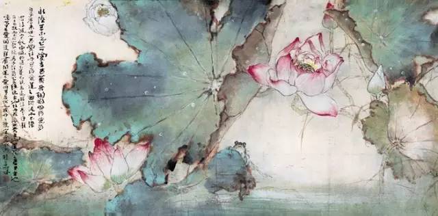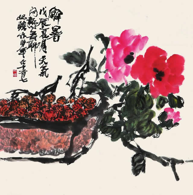 王个簃(yí),其作品用笔浑厚刚健,笔势静蕴含蓄,潇洒遒劲,结构严谨,色彩奇丽,气韵流动,可谓画中有诗,诗中有画。