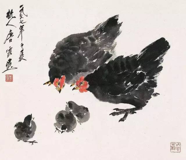 陈大羽,以大写意花鸟而著称,尤擅画雄鸡,兼及山水、人物,作品气势宏伟,笔力雄健,浑厚酣畅。