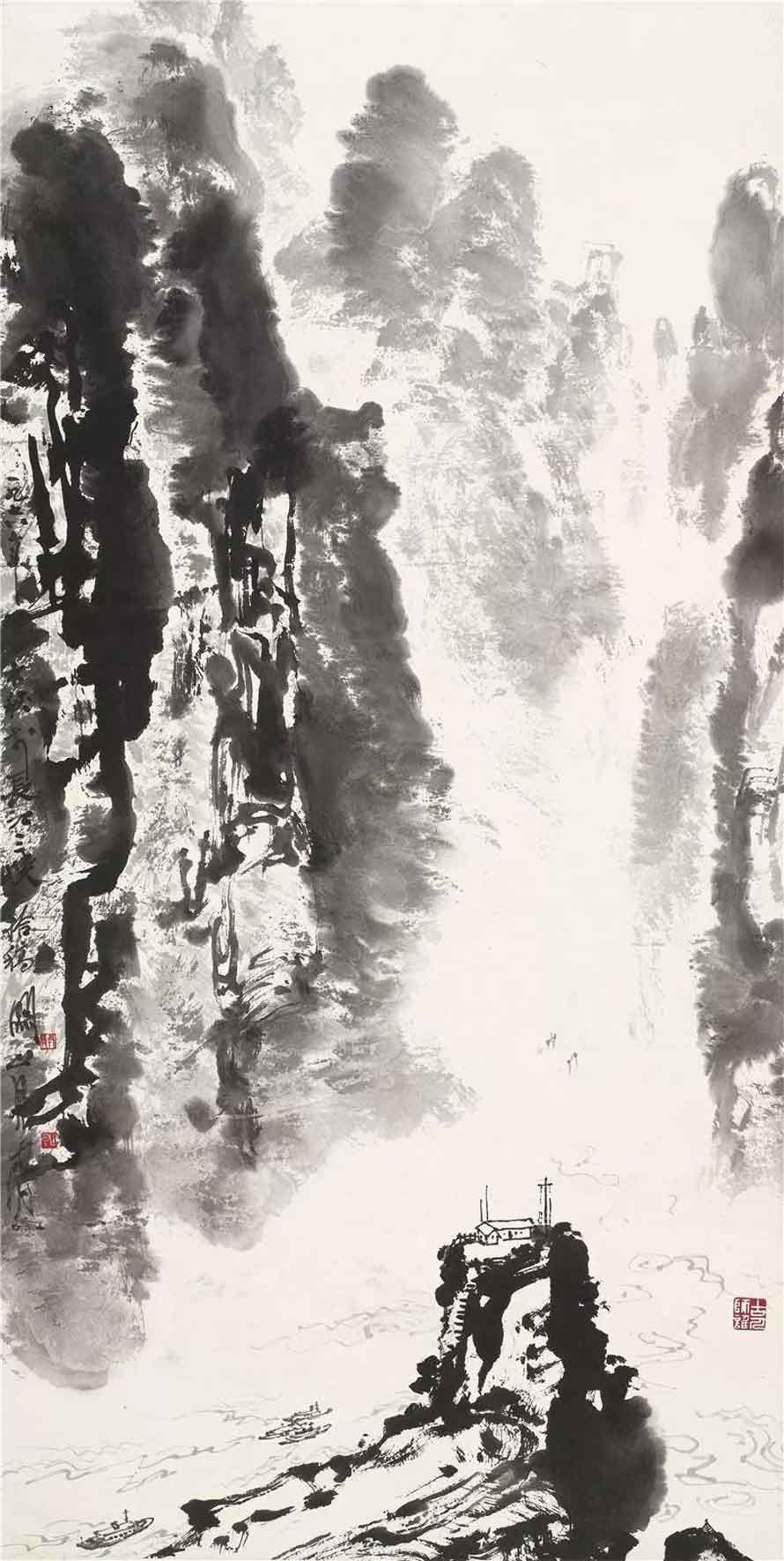 △关山月《巫峡》92.3 cm×46.5 cm 纸本水墨 1978年 关山月艺术基金会藏
