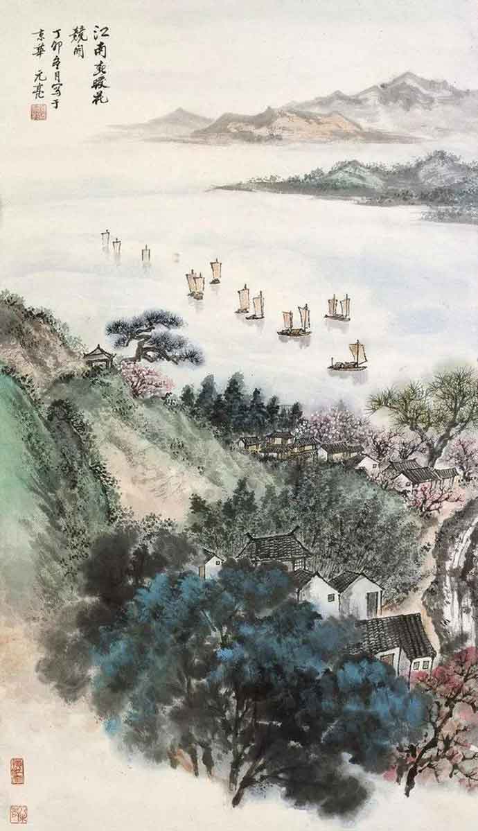 潘天寿指画《晴霞》, 四屏通景且首次面世!