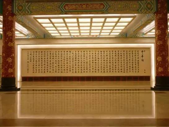 除国画外,书法也是人民大会堂悬挂最多的艺术作品。其中最著名的是悬挂在金色大厅的《中华颂》,其作者是启功的弟子——张志和。
