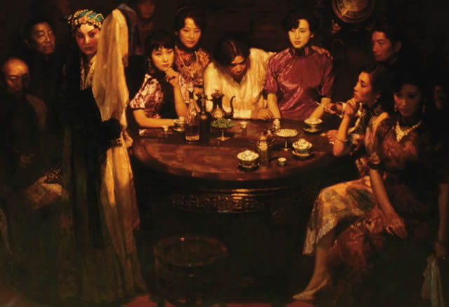 《玉堂春暖》作为其“海上旧梦”系列之一,正是该时期最重要的作品,在国内外众多画册中出版,并作为陈逸飞最重要的代表作多次被引用,该幅作品完成于1993年,并于这一年在香港拍场成交。此作高169.5厘米, 宽243.5厘米,是当时陈逸飞拍卖作品中尺幅最大的一件,以近200万港币的价格取得当时中国艺术家油画拍价的最高纪录。