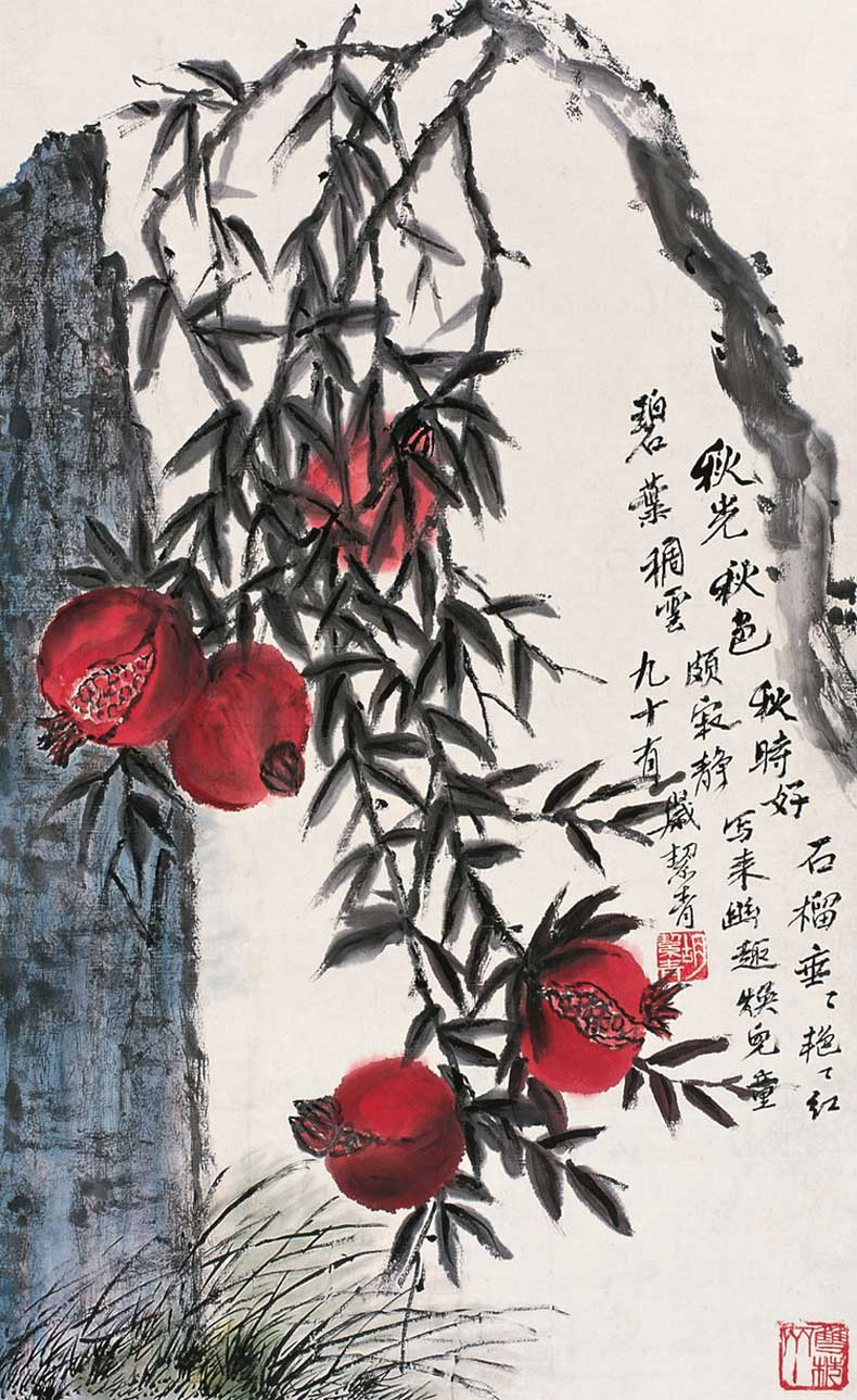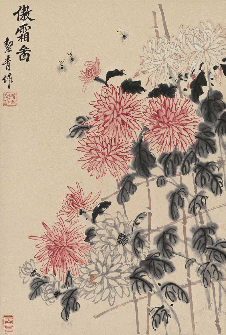 潘天寿指画《晴霞》, 四屏通景且首次面世!