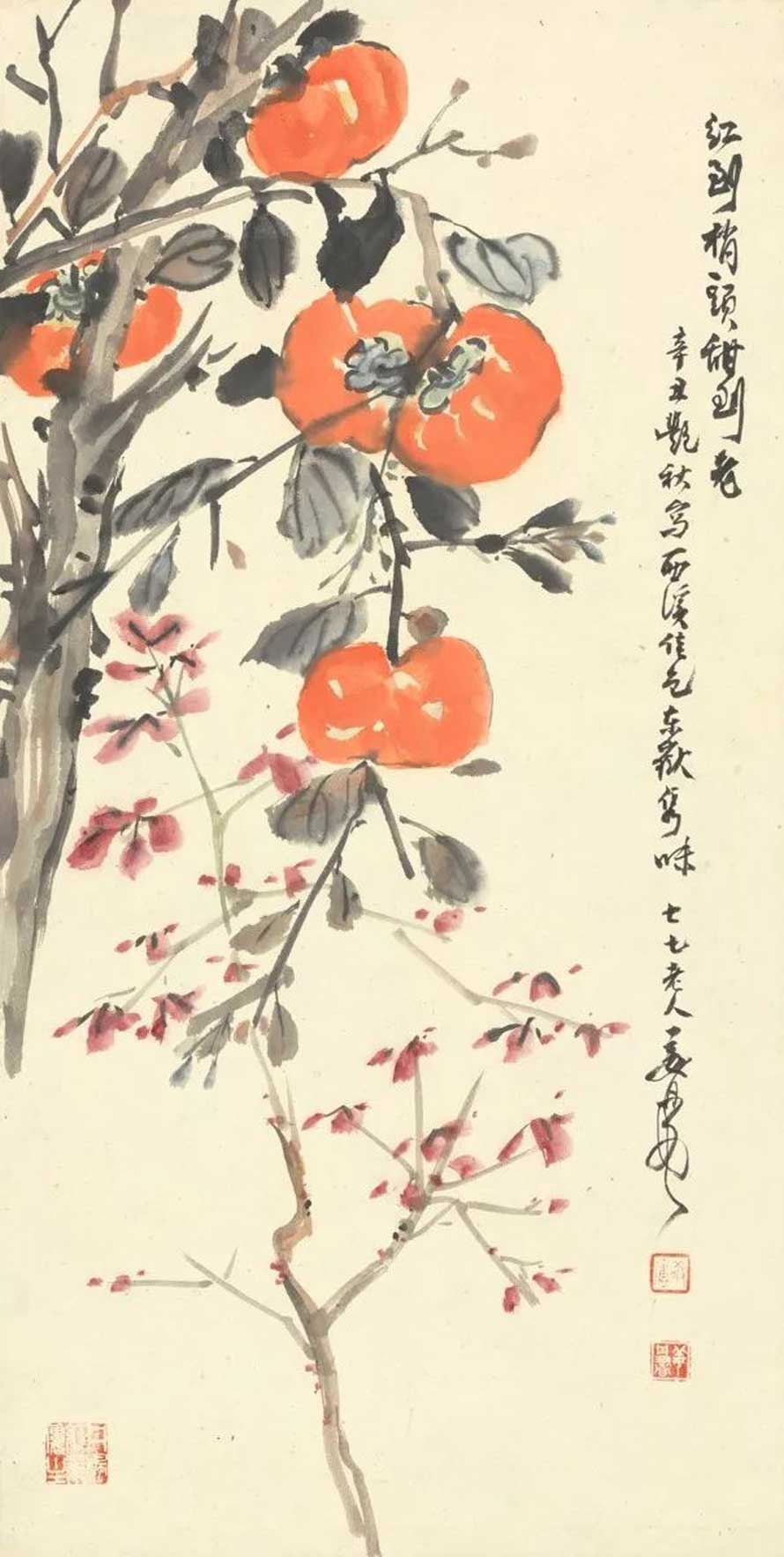 潘天寿指画《晴霞》, 四屏通景且首次面世!