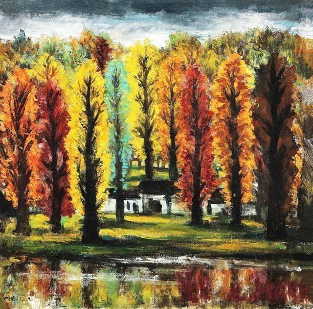 然而,他的画无论色彩多斑斓,意象多丰富,但当我们仔细看画时,映入眼帘的却是华丽彩色中流露出的一抹挥之不去的哀愁:相互依偎的满盆红花、遍野秋树,给人的是一种淡淡的惆怅;丁香、紫藤,或垂或仰,也令人有身世飘零之感……