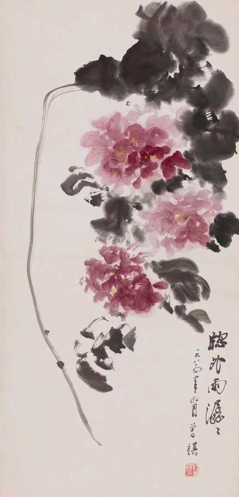 潘天寿指画《晴霞》, 四屏通景且首次面世!