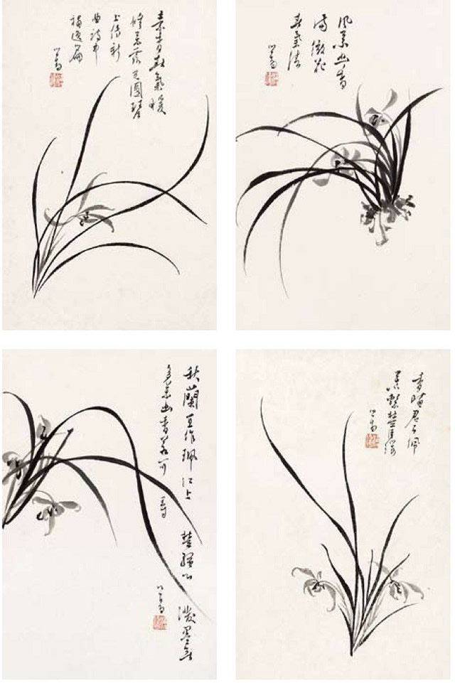 潘天寿指画《晴霞》, 四屏通景且首次面世!