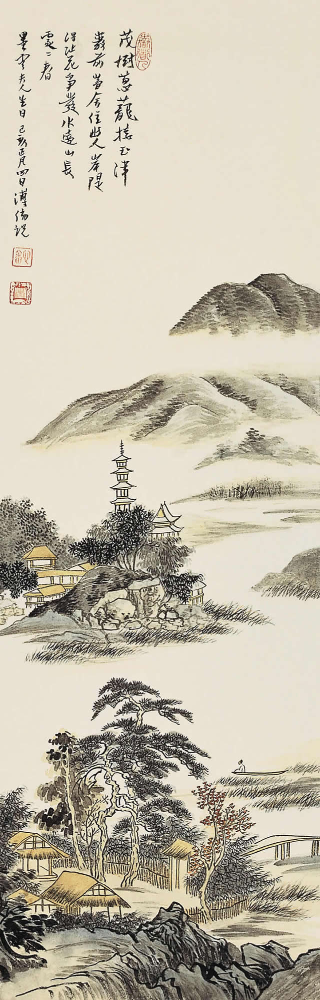 △溥心畬 1949年作 渔舍炊烟 立轴