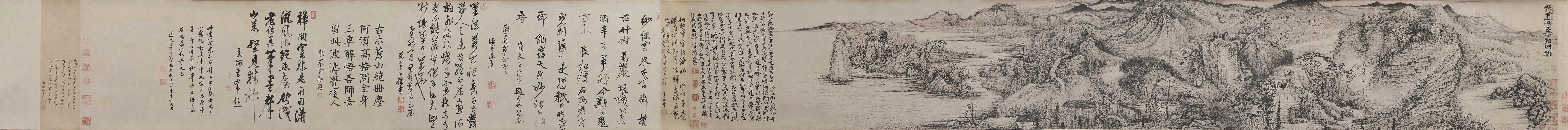 《搜尽奇峰打草稿图》卷,纵42.8厘米,横285.5厘米,纸本,墨色。