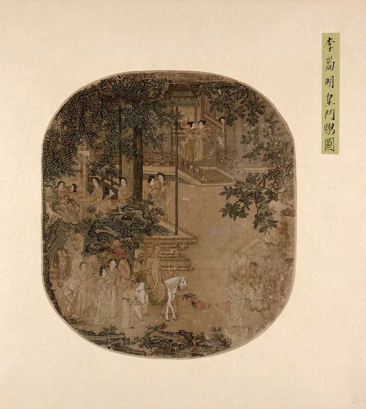 《明皇斗鸡图》绘唐明皇驻马观赏斗鸡的场景。画中唐明皇闲适逸豫,器宇不凡;斗鸡引颈收翅,曲足抬尾,争斗一触即发。全图既绘出了盛唐的歌舞升平,又在云鬓珠翠间藏渔阳鼙鼓,隐天宝之乱。画作以史为镜,传递给当时及后世帝王一个朴素的道理:逸豫可以亡身,唯有居安思危、励精图治,才得国泰民安。