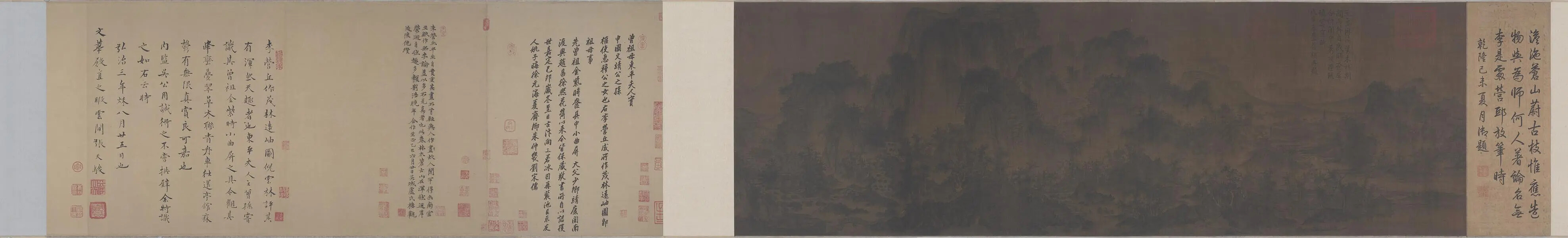 由于这幅《茂林远岫图卷》没有款识,后代的收藏者也都是根据画卷后部南宋向冰、元代倪瓒以及明初张天骏三人的题跋,而将其作者定为李成。明、清时期的张丑、吴升等曾认定题跋为后人补配,怀疑作品不是李成真迹。当代鉴定家对这件作品的作者归属问题也存在着诸多推论。其实,欣赏一件古代的书画作品,首先着重看的是它的艺术质量与笔墨精神,真伪问题应在其后。