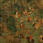 《归棹图》是唐末五代时期的画家荆浩所创作的一幅画。这幅画主要以墨笔画青山绿水,小舟渔人斜阳归棹。图中展现出雄壮的大山,深远的江水,归泊、停泊的小舟和生动的人物。画面的构图宏伟,色彩沉稳,展现出一种雄浑壮阔的自然景色。荆浩在这幅画中采用了全景式的构图方式,以大山大水的形式来展现自然...