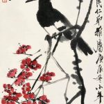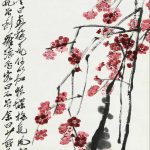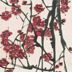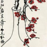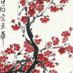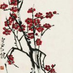 白石画梅深受吴昌硕影响,多以凝重的金石笔法画枝干,点花则喜爱用纯净的西洋红平涂,纯而又纯,红艳至极,还将梅枝干和花蕊变色为重墨,使红梅在墨色映衬下更加明亮清新。 中国画巨匠齐白石爱梅、画梅,他笔下的红梅、白梅,或含苞怒放,或冰清玉洁,自有一番气息,慑色动人。——陈庄