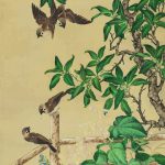 屈兆麟(1844-1927),字仁甫,号秋圃、秋圃老人,北京人。清朝宫廷画家。屈兆麟自幼喜爱绘画,18岁进入清宫造办处如意馆当差,师从当时著名的宫廷画家华庚、孙源、徐燕文等。屈兆麟学苦练,技艺精进,很快就成为如意馆的佼佼者者。 此画作以梧桐树和山雀为题材,描绘了山雀在梧桐树枝间嬉...