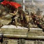 在《北平解放》中,叶浅予一反此前以写意为主的艺术风格,采用中国工笔重彩画的表现方式,创作了一件线条勾勒精细谨严,敷彩浓重红艳的艺术作品。 △叶浅予作品《北平解放》 作品描绘的是1949年,在广大群众的簇拥欢迎下,人民解放军秩序井然的入城式场景。通过画面,我们可以看到从前门经未建成...