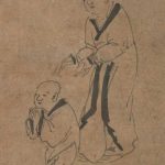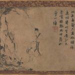 元因陀罗《五祖再来图》纸本立轴。水墨32.7×44.6厘米。克利夫兰艺术博物馆。 此作所画为“五祖再来”的禅林逸闻。《佛祖统纪》记载,破头山中有一老僧号“栽松道者”,闻四祖道信居此,遂前来求其法道。不料四祖言僧人过老,若能转世再来方可纳之。老僧闻言后便至水边,托生于浣衣...
