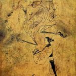 所谓帛画,专指古代画在丝织物上的图画,早在专门的纸、绢尚未发明之前人们往往把字画绘在木版、石板、器物或丝织物上。帛画可以说是传统卷轴画这一艺术样式的先声。《龙凤仕女图》1949年2月在湖南省长沙市陈家大山楚墓出土。全画的主题是祈求飞腾的龙凤引导墓主人的灵魂早日登天升仙。 △战国楚...