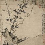 张彦辅,元代画家。道士。号六一,居燕京,从玄德真人学道。特精绘事,善画山水,尝用商琦法作江南秋思图。所写竹石幽禽,瘦劲幽峭,不在赵(孟頫)、管(道升)下。至正三年(1343)作棘竹幽禽图。兼工画马,其拂郎马图,自出新意,不受羁绁,超轶之势,见于毫楮间。 此图绘秀石旁两株修竹交柯而...