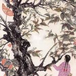 此画是石鲁为新中国的水利、土木建筑专家曼丘所作。曼丘与石鲁同年,在上个世纪四十年代,他们先后抵达延安,并以各自的专长投身革命工作,曼丘虽然是一位科学家,但他对于中国书画的鉴赏也有很深的造诣,因他喜欢人物画,石鲁故写本幅相赠,此画也见证了一段革命时代的友谊。 款识:春满桃莺天,红年...