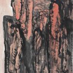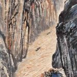 创作于1959年的《高山仰止》是石鲁的国画巨作,画面雄奇壮美,用笔矫健,水墨淋漓。这件作品曾经为陕西省庆祝建国十周年的美术展览会的展品,是他在同一时期为中国革命博物馆所创作的巨幅国画《转战陕北》的姐妹篇。这是一件气势磅礴,意境阔大的巨制,雄伟的巨岩在眼前突兀而起,以丹砂色调来表现...