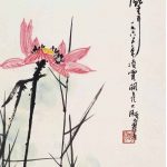潘天寿先生画荷风格,墨叶块面大笔挥搽,硕叶如盖,笔速较快,笔似斧劈,胆魄惊。荷花亭亭净植,娇艳欲滴,气旺神强。荷柄水草如长枪大戟,穿插有致,坚如铁铸,壁垒森严,使人望之生畏。有一种“可远观而不可亵玩焉”的感觉。他非常喜欢荷花,不仅仅因为荷花美丽,更因为荷花品格高尚。因此,荷花成了...