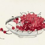 樱桃在中国国画中多寓意为:圣洁之美,彼此珍惜。 △齐白石1950年作《樱桃》 68.3×34.6cm 成交价2408万元 齐白石画樱桃的作品很多,但这一幅作品最好,一只青瓷盘盛满了刚刚摘下的红樱桃,还有数十颗滚落盘外。显然,画外之意是主人在樱桃熟了的初夏,见到了远道来访的好友,欣...