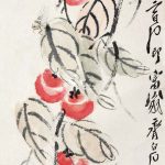 柿子是齐白石最常画的题材之一,齐白石喜爱柿子,因其与事、世等字谐音,有吉祥的寓意,如《事事如意》、《事事太平》、《事事清白》、《眼看五世》、《三世太平》、《五世同甘》等,所以白石老人经常以柿子为题材进行创作。借物送福,寄物咏言便是白石老人常用的动情之笔,更曾自喻为柿园先生。 △齐...