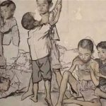 1945年,日本投降。有位中国画家画了一幅画,叫做《爸爸永不回来了》,画中的小姑娘双膝跪倒,仰望青天,意思很清楚:她的父亲在抗战中死掉了。 △《爸爸永不回来了》,蒋兆和 当年,全国上下一片狂欢,太多主题可以画——直到今天国家组织的大型历史画还在画抗战,画家们早已学了西洋人的套路,...