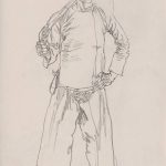 19在捕捉形象时,无须长时间地精雕细描,只须寥寥数笔即可抓住人的本质和精神。素描常常简练而又深入地刻画出人物的形象美感。而素材性的全身速写又常常画得较深入。这是出于实际的需要。速写本来就不是技法的炫耀,而是表达审美。 境界的手段。速写的画法直接影响着创作的风格,而创作的追求又影响着速...