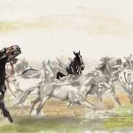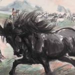 是幅《牧马图》(见下图)创作于1981年。粉碎“四人帮”之后,黄胄迎来了创作的春天。然而,1977年春天脊柱综合症的急性发作,给画家带来无比痛苦,四肢轻瘫,手指麻木,医院一住,即是漫长的两年零八个月。所幸吉人自有天相,出院后的黄胄能够继续徜徉在艺术创作的甜蜜海洋中。 是幅作品为黄...