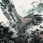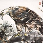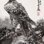 黄胄《松鹰图》笔墨苍劲、雄浑有力,苍鹰雄傲的距于盘曲的松树之上,目击长空,双眼炯炯有神,犀利而有力;挺立的苍松郁郁葱葱。苍鹰的喙如同利斧,用淡淡的花青晕染之后似乎闪现着冷冷寒光;鹰的利爪宛如钢钩紧扣松枝;整幅画面尽显苍鹰于万重山中展翅翱翔的坚毅精神。黄胄《松鹰图》观后给人一种精神...