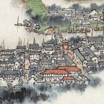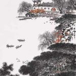 《常熟田》是钱松嵒先生为庆祝建国15周年献礼创作画之一。画中平田万顷,一片葱绿,市镇喧闹,河网密布,舟楫缓行,一片丰收在望的江南景象。全图构思新颖,立意深邃,视角独特,构图巧妙,手法稳实,不炫耀技巧,以极具传统功力之笔线,缓缓勾出,清渲淡染,产生了极具视觉穿透之美而浸润人心的效果...