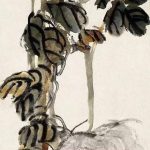 金石气息:吴昌硕绘画艺术的第一大特色是有金石气息。所谓金石气息,指的就是钟鼎上所铸的金文与刻在石碑上的文字所具有的味道。人们常说谁谁的画作有金石气息,其实这种评论标准都是从吴昌硕的绘画风格出现以后才有的。比如,人们在谈到徐青藤、八大山人时,就从来没有听说过评价他们的画作有金石气息...
