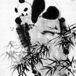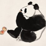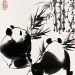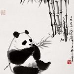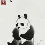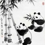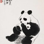 吴作人的熊猫图 ,采用泼墨大写意的画法,寥寥数笔就将大熊猫的活泼可爱的形象淋漓尽致地表现了出来。墨色深浅也运用得恰到好处,浅色墨勾勒出熊猫的轮廓,而深色墨块染就了熊猫的毛色。由于宣纸渗化的特点,饱蘸浓墨的笔融将熊猫的绒毛表现得纤毫毕见,使熊猫充满动感,栩栩如生。没有人不为熊猫那奇...